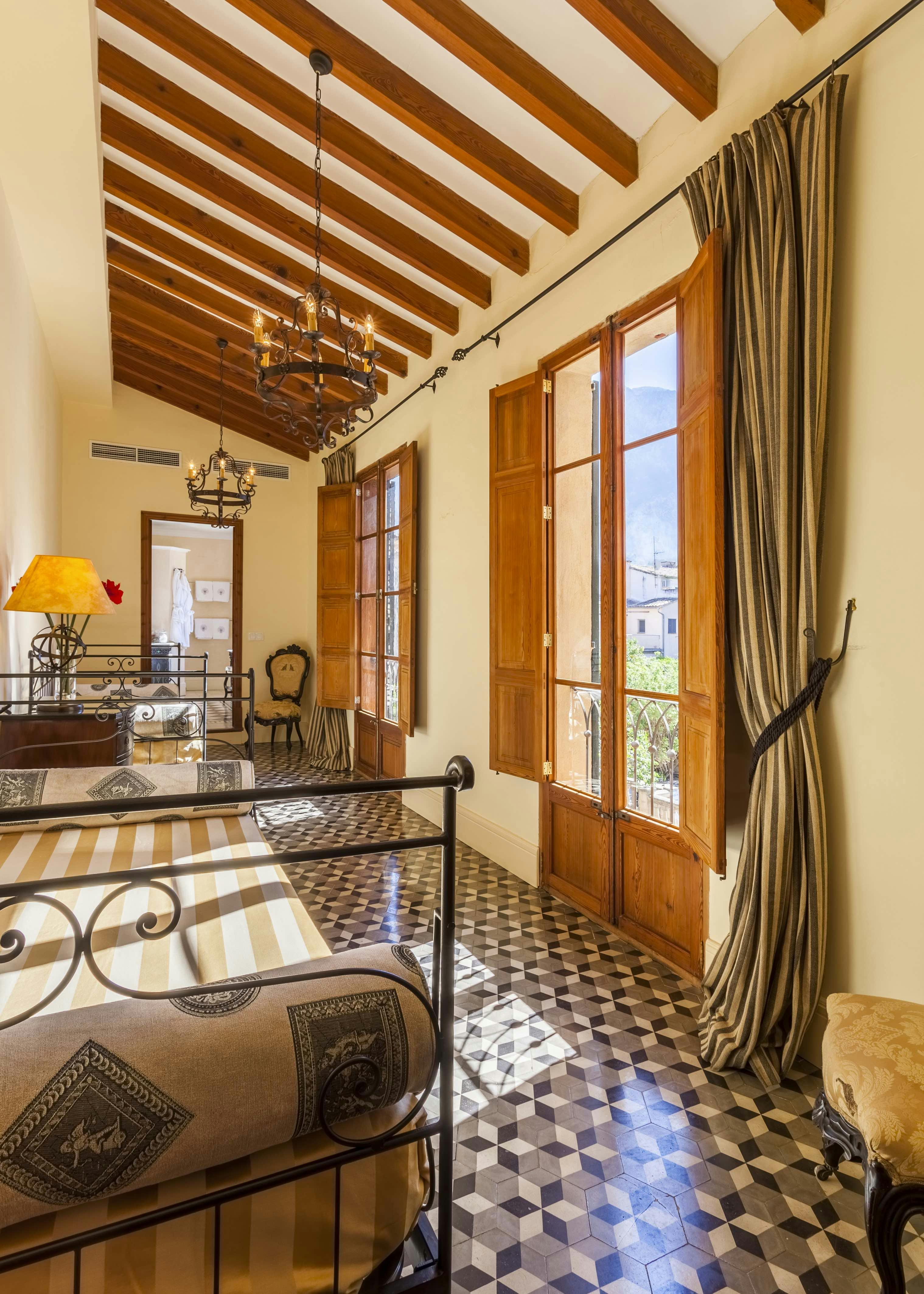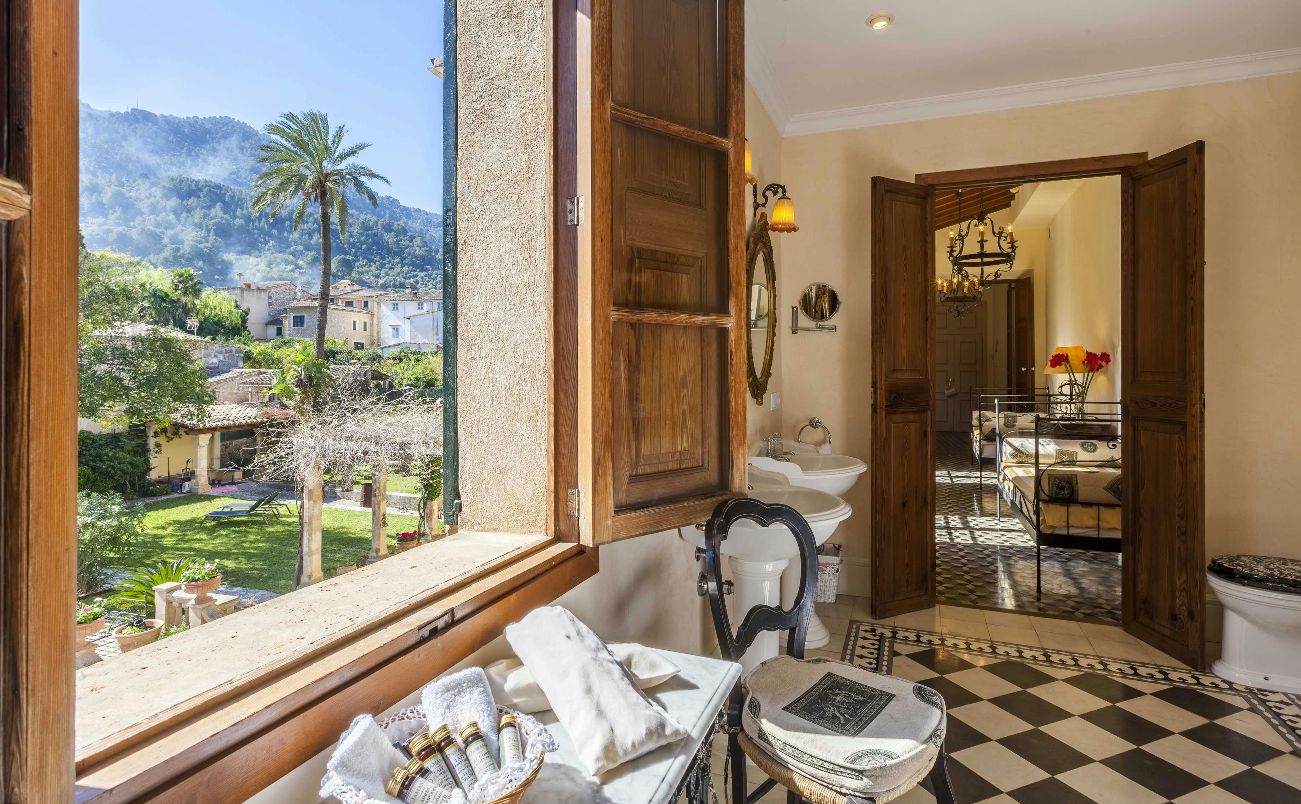 Another set of double doors leads you through to a private sun lounge complete with 2 couch/day-beds where large shuttered French windows overlook the Salvia garden and give stunning views of the Tramuntana Mountains.