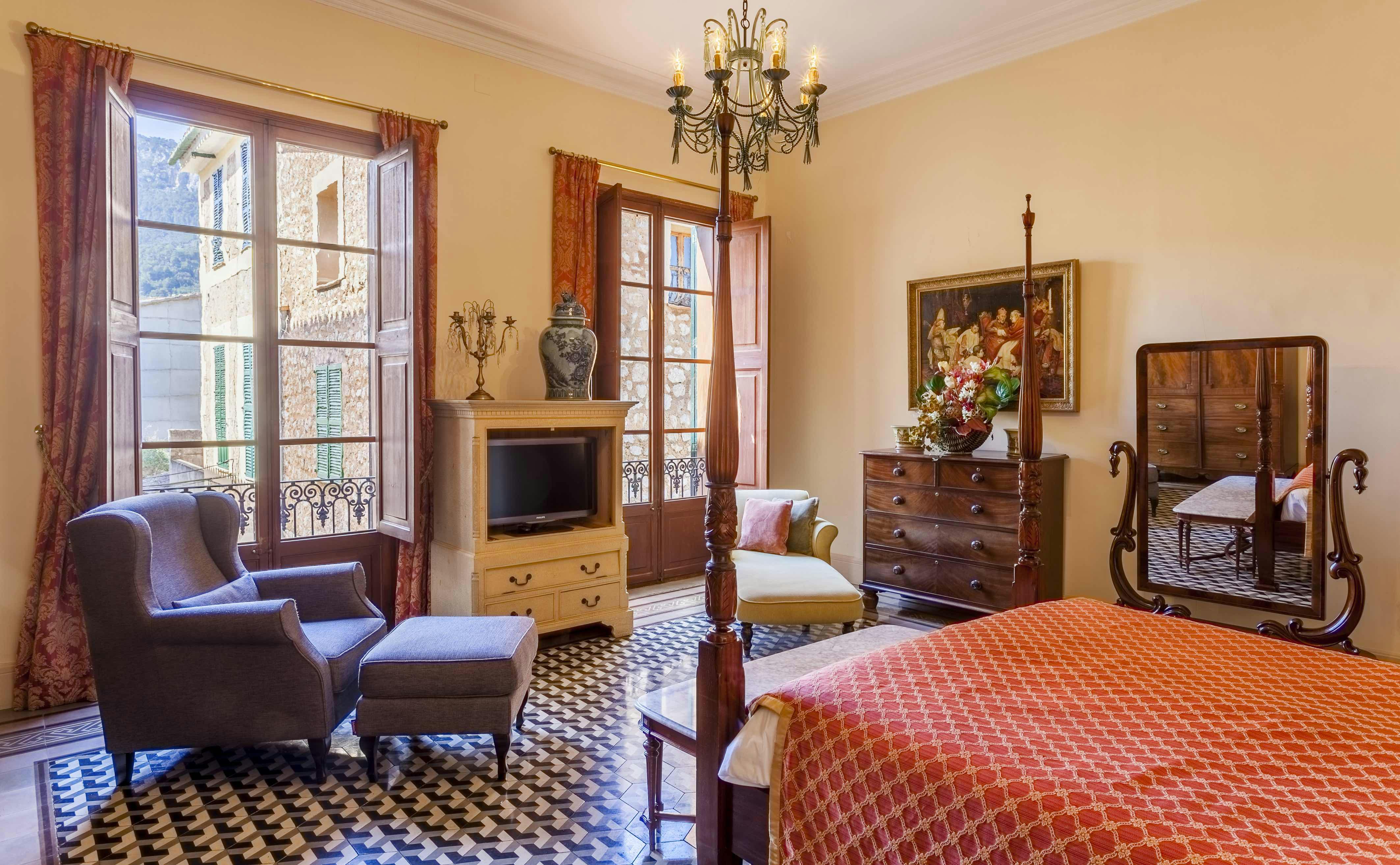 The Salvia suite is the most impressive at Salvia and is situated on the first floor of restored merchants house - The first room you enter is an elegant reception room complete with period sofa & armchairs from where large double doors lead into the luxurious bedroom complete with an antique four poster queen size double bed and two French windows with Juliet balconies overlook the ancient narrow streets of Sóller.